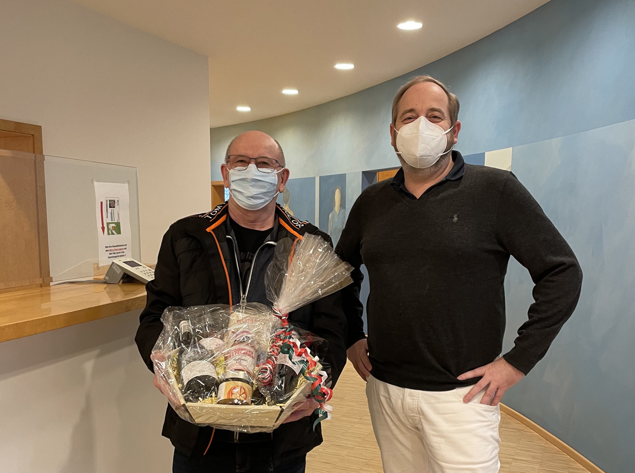 Heute war es soweit. Der 50.000ste Neupatient hat unsere Praxis besucht. Er freute sich sehr über den unerwarteten Präsentkorb. Eine stolze Leistung in 20 Jahren Praxistätigkeit.